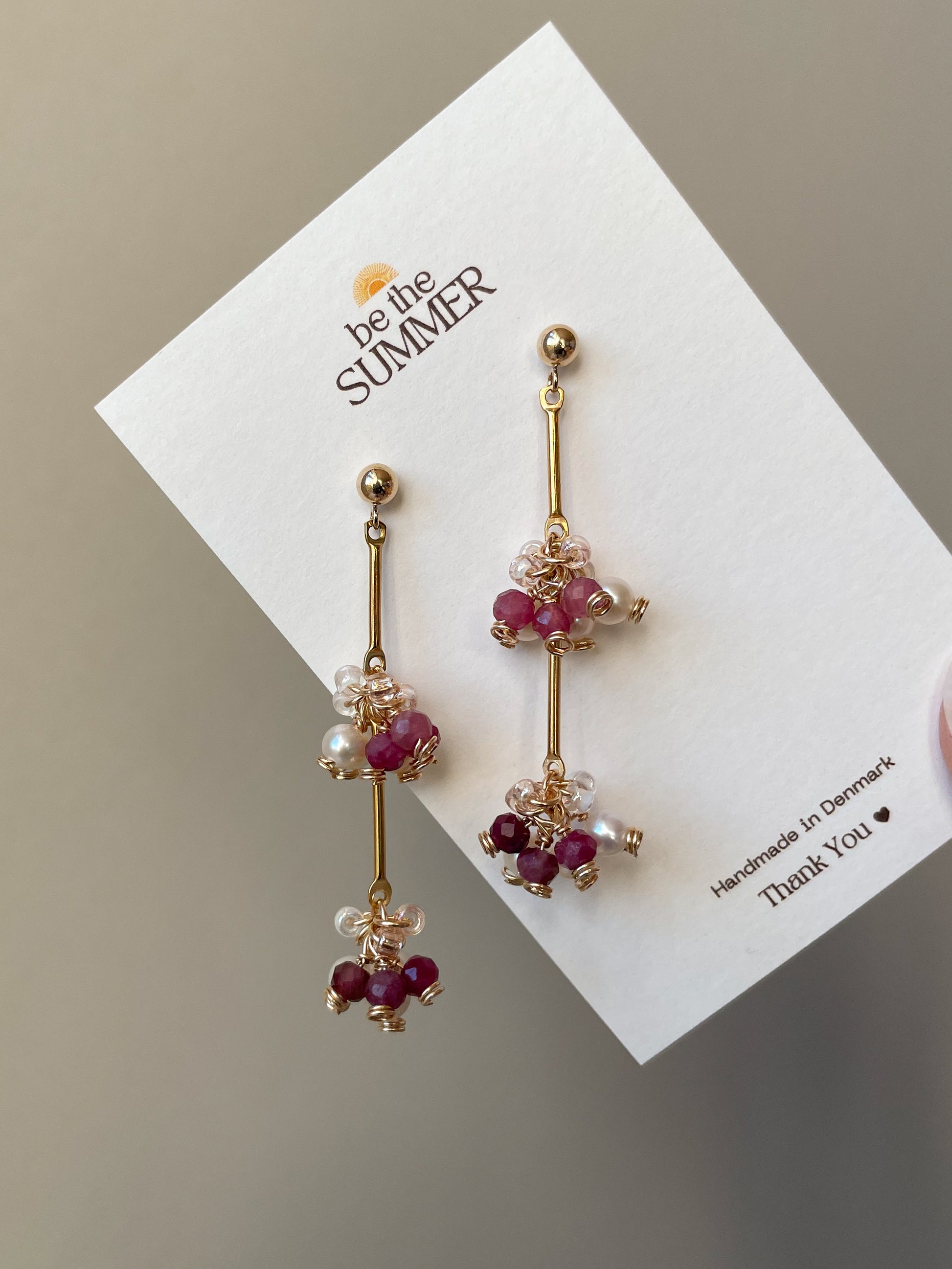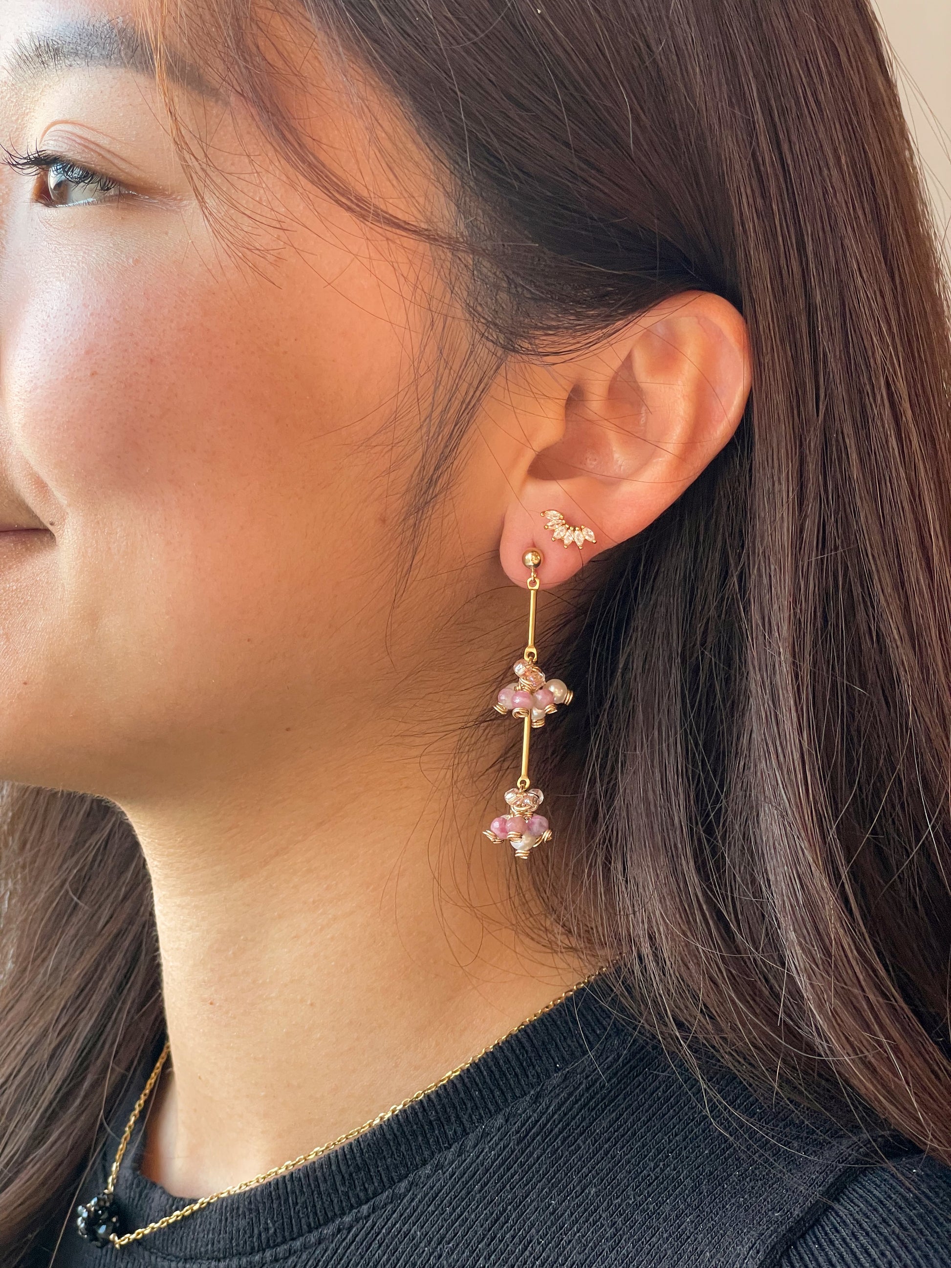 This fruity pair features mini grape clusters crafted with specially selected pink tourmaline stones, flowing in a gentle gradient from light to deep berry tones. Unique yet easy to style, The Raspberry Tree adds a soft sweetness and quiet colour to any wardrobe.